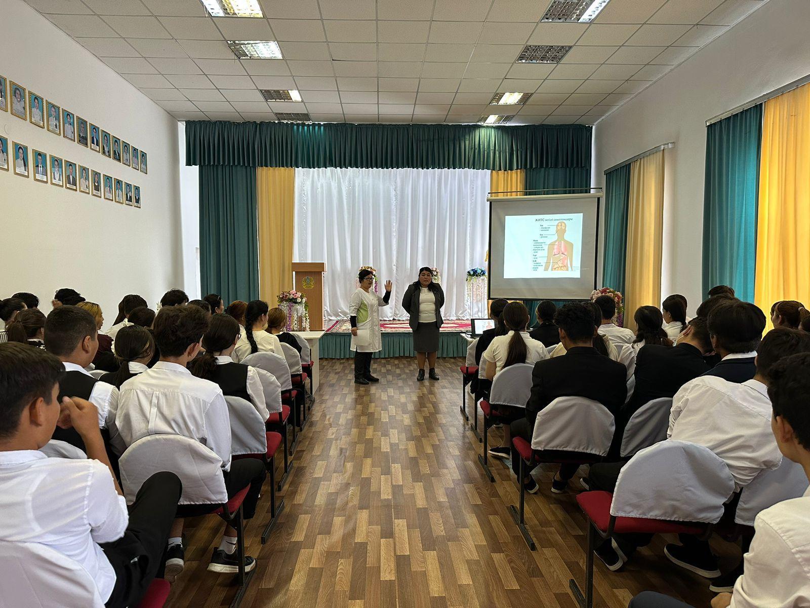 Жстреча школьной медсестры с учащимися.