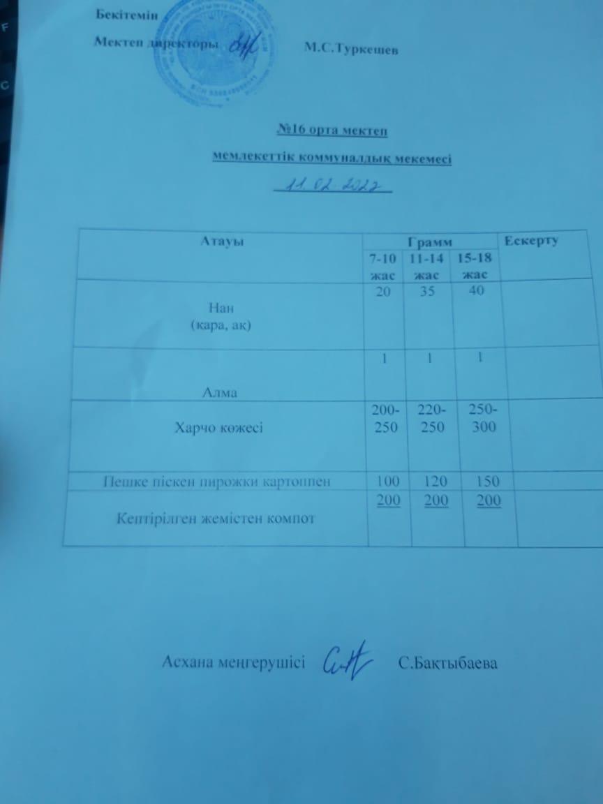 МЕНЮ 11.02.2022 » №16 ОРТА МЕКТЕП