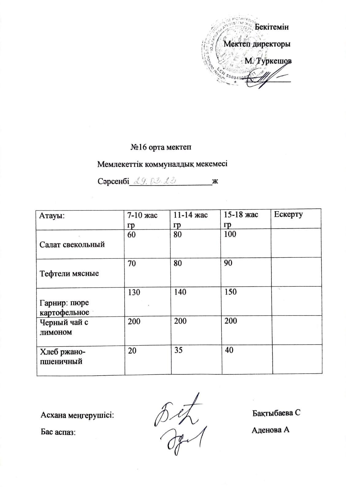 Меню 29.03.23 » №16 ОРТА МЕКТЕП