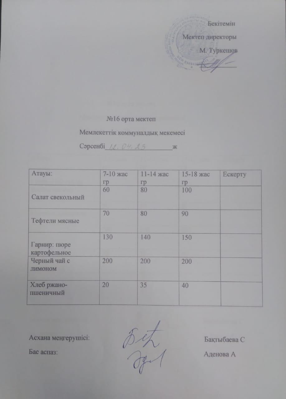 Меню 12.04.2023 » №16 ОРТА МЕКТЕП