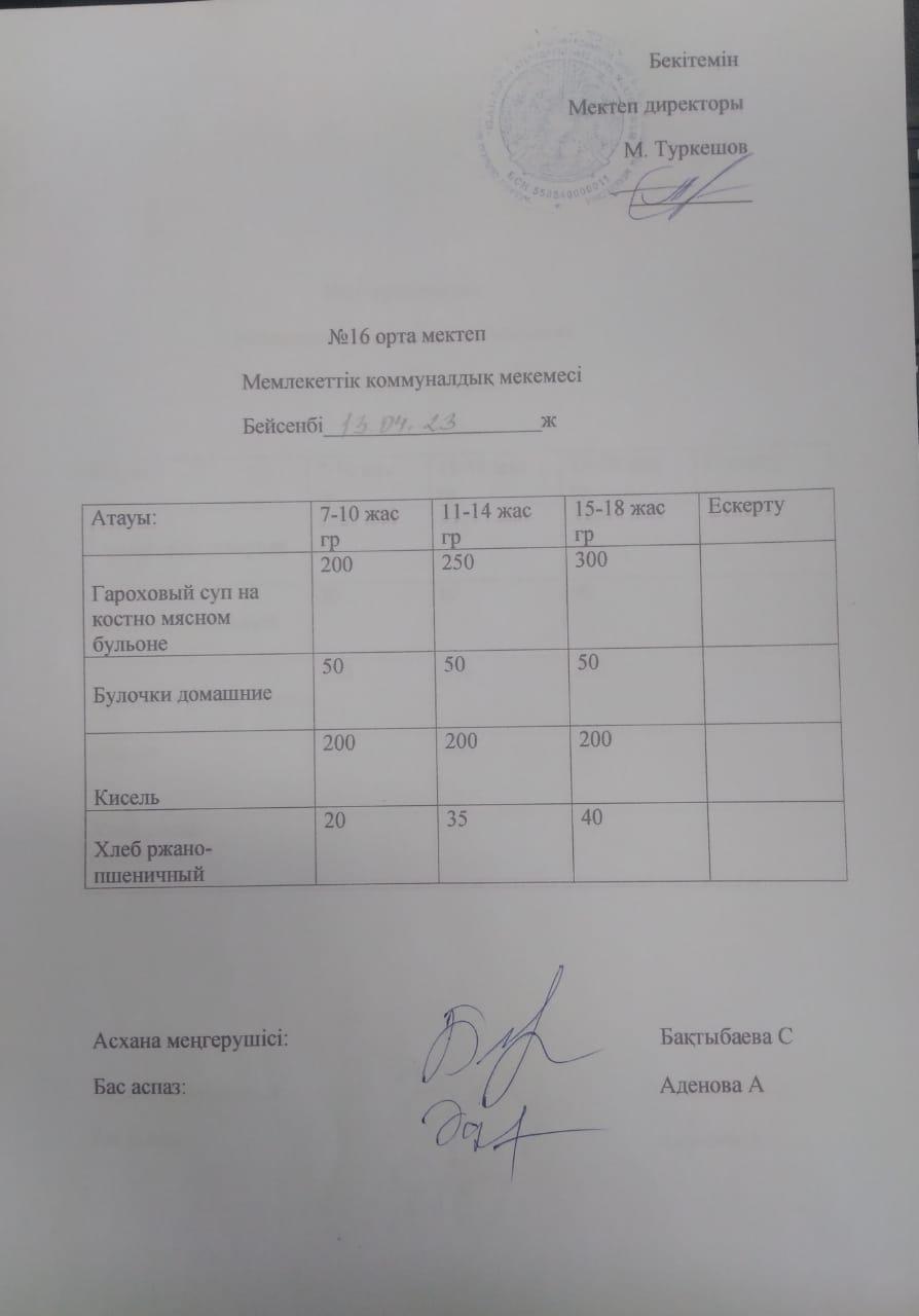 Меню 13.04.2023 » №16 ОРТА МЕКТЕП