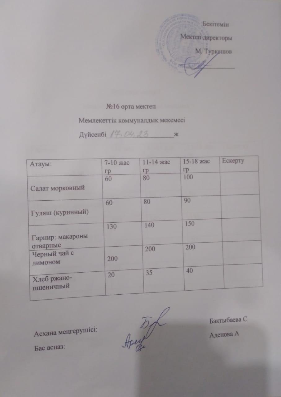 Меню 17.04.2023 » №16 ОРТА МЕКТЕП