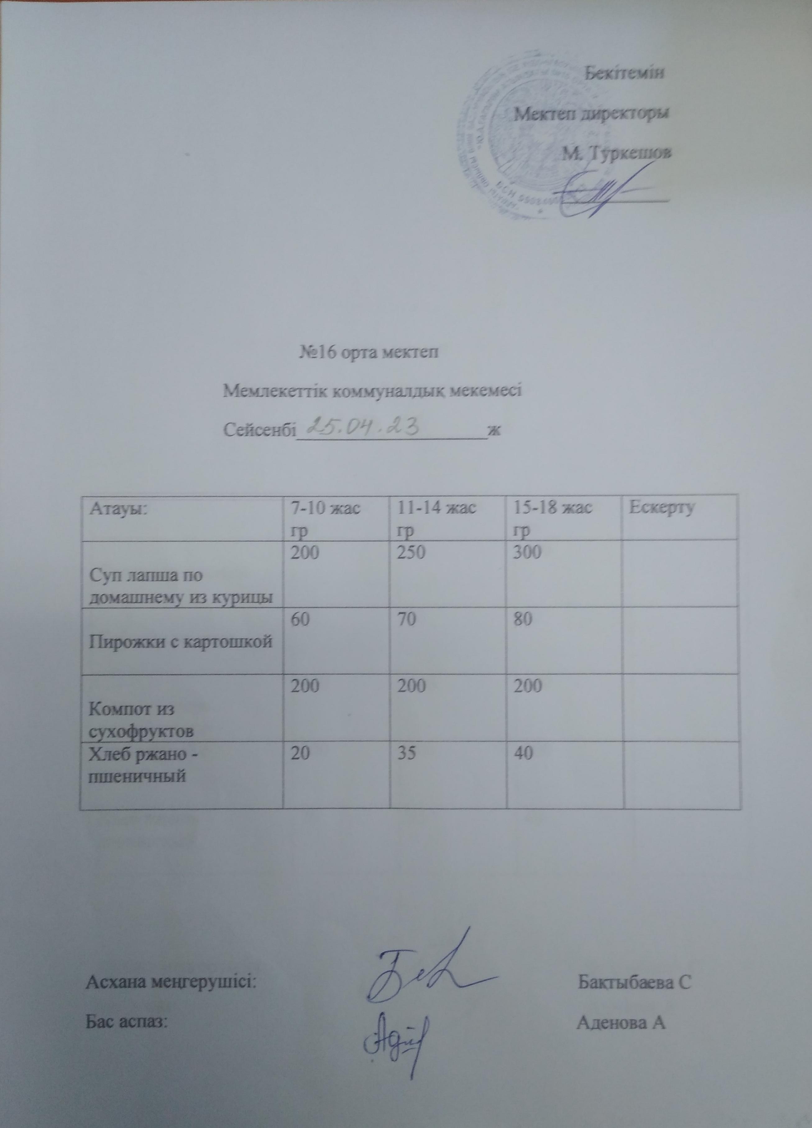 Меню 25.04.23 » №16 ОРТА МЕКТЕП