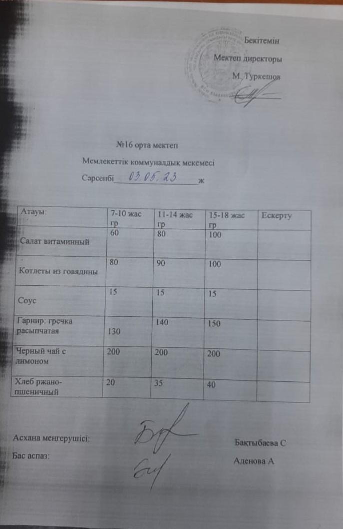 Меню 03.05.2023 » №16 ОРТА МЕКТЕП