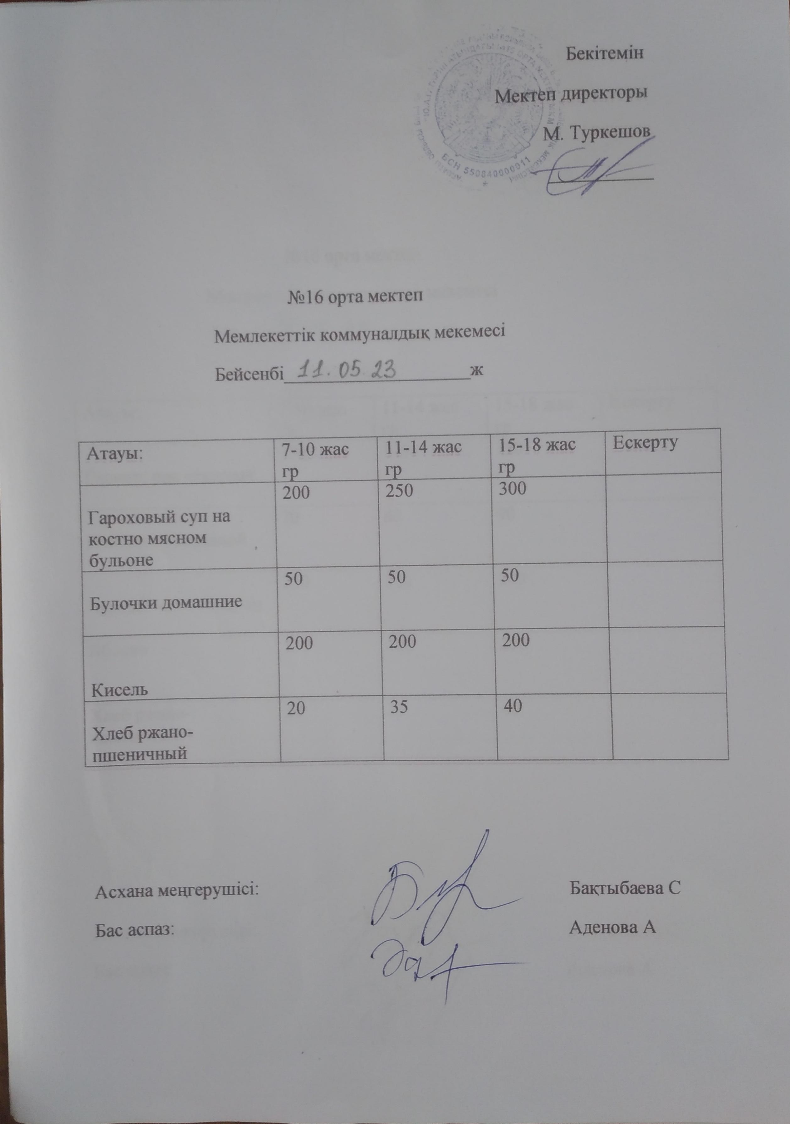 Меню 11.05.2023 » №16 ОРТА МЕКТЕП
