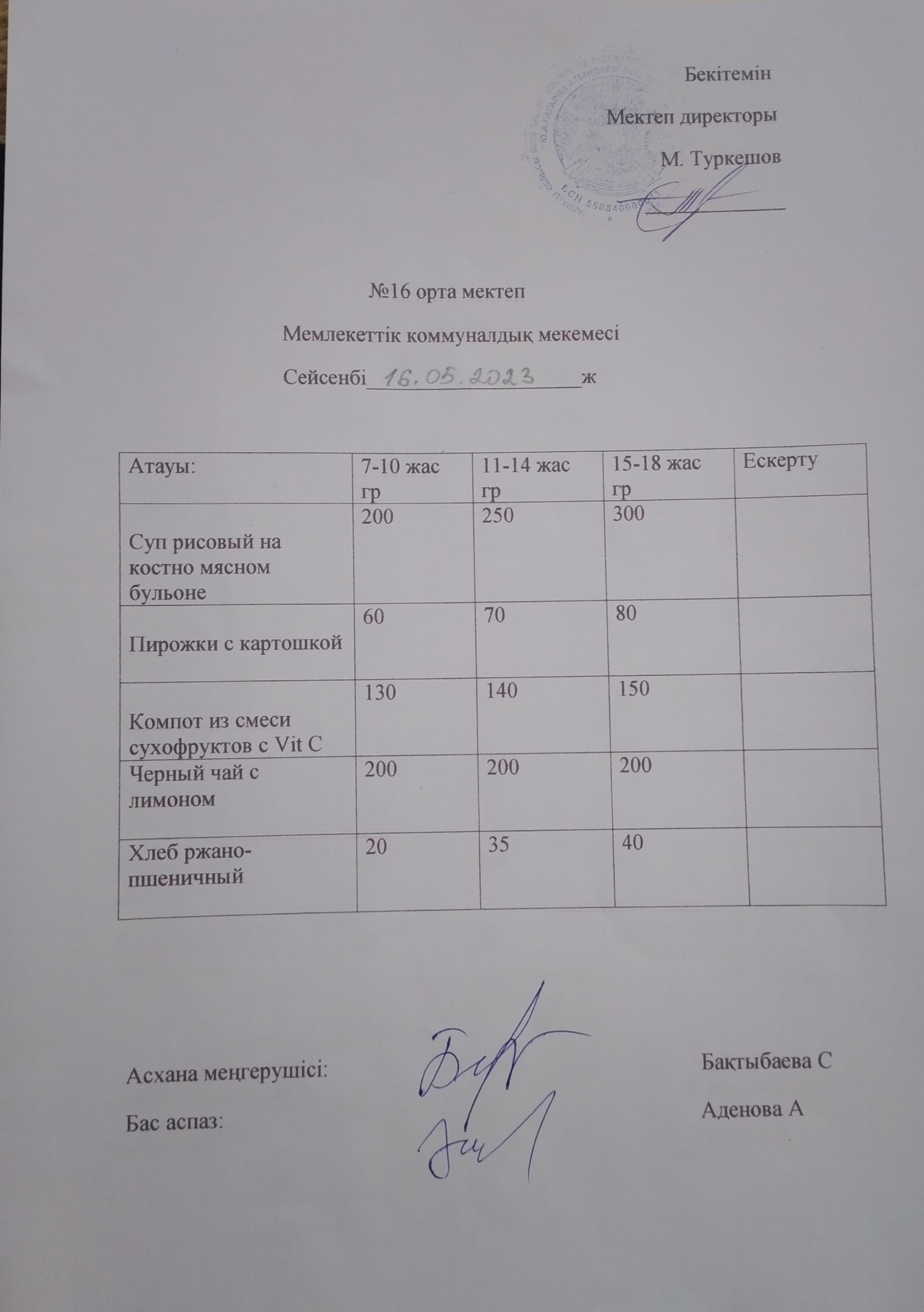 Меню 16.05.2023 » №16 ОРТА МЕКТЕП