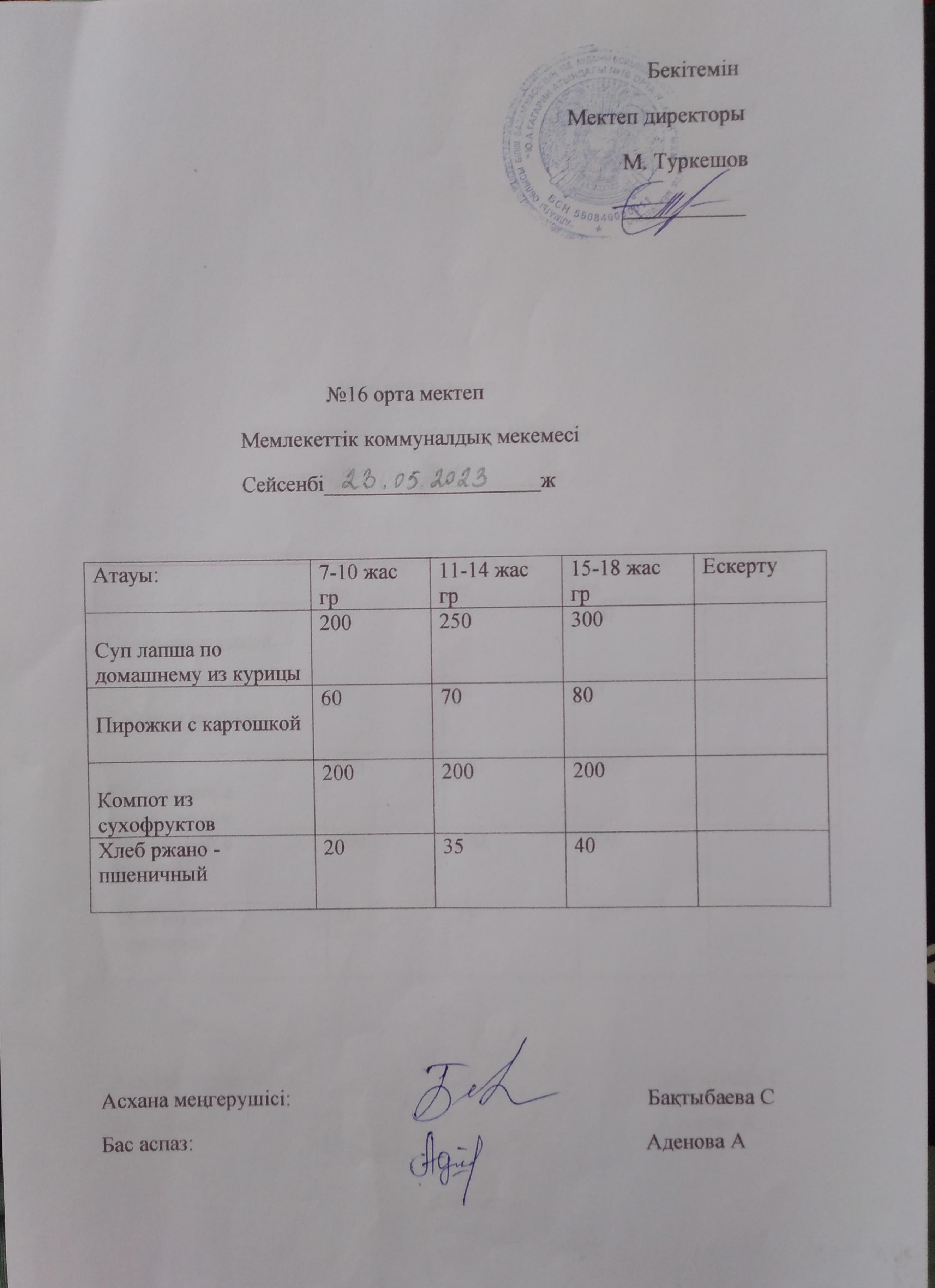 Меню 23.05.2023 » №16 ОРТА МЕКТЕП