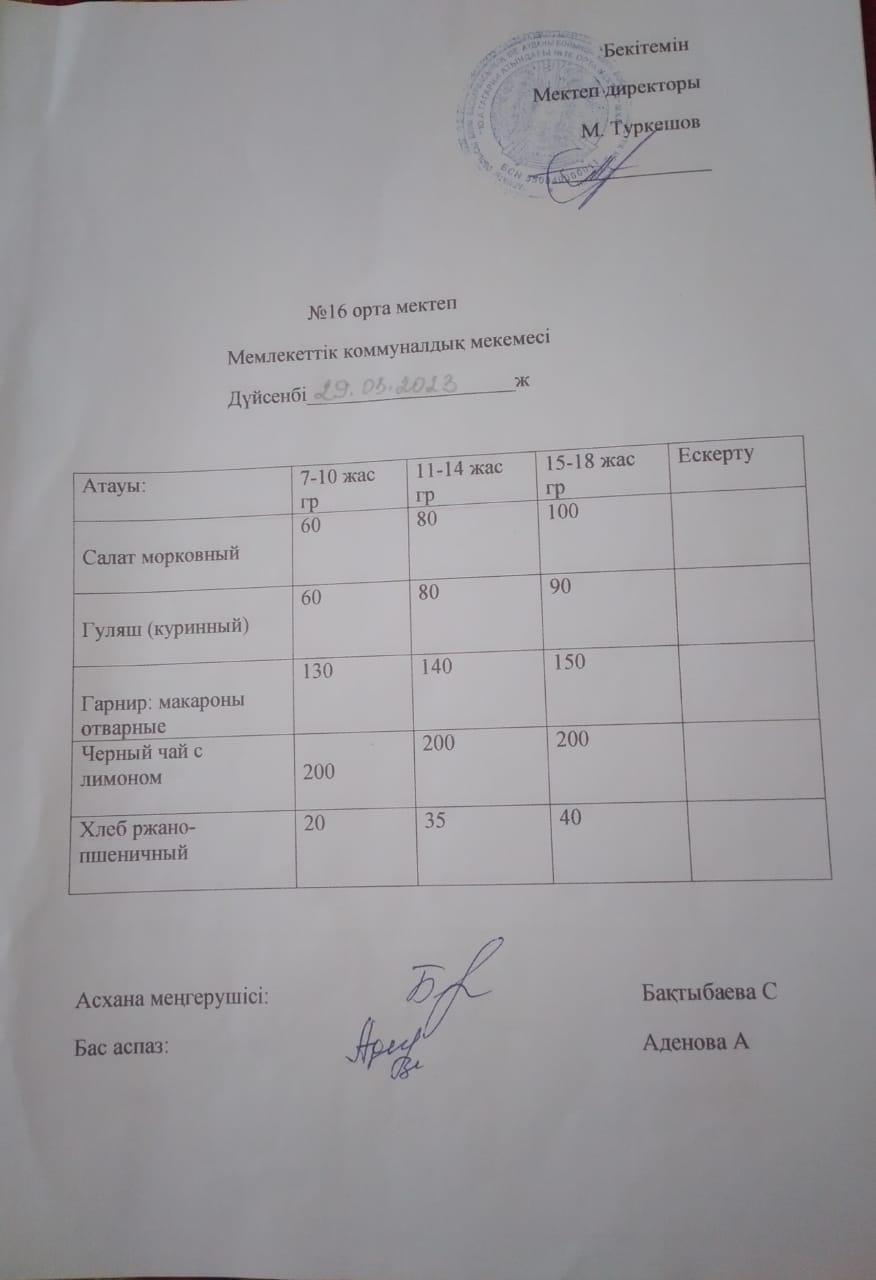 Меню 29.05.2023 » №16 ОРТА МЕКТЕП