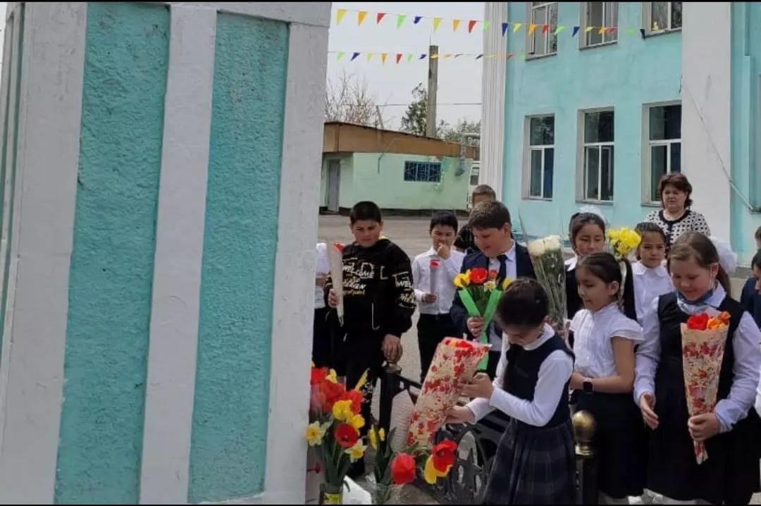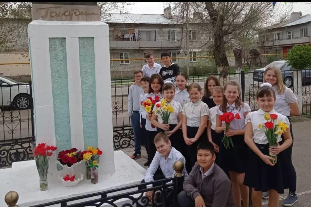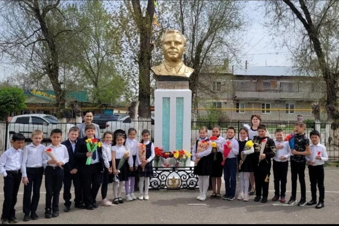 Ю.А.Гагарин атындағы 16 орта мектебі бойынша "12 сәуір -Ғарышкерлер күніне" орай сынып жетекшілер оқушыларымен Ю.А.Гагарин ескерткішіне гүл шоқтарын қойды.