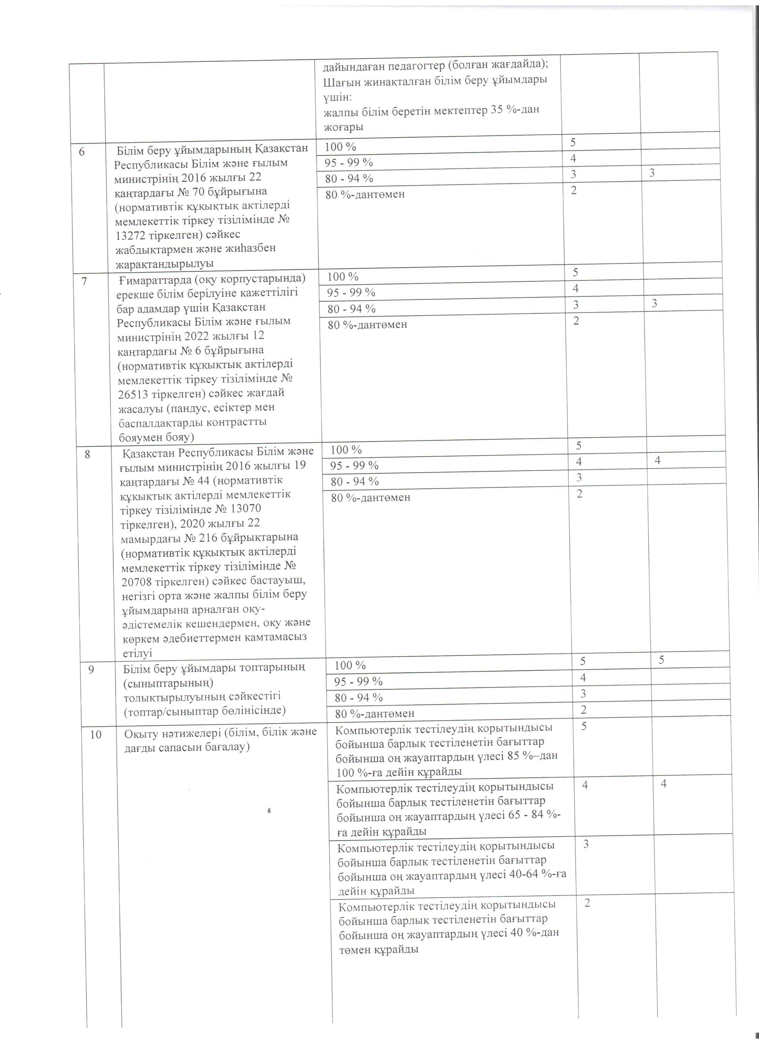 “Ю.А.Гагарин атындағы №16 мектеп” МКМ бойынша оқу бағдарламаларын іске асыраты“Ю.А.Гагарин атындағы №16 мектеп” МКМ бойынша оқу бағдарламаларын іске асыратын білім беру ұйымдарын бағалауына арналн білім беру ұйымдарын бағалауына арналған өлшемшарттар
