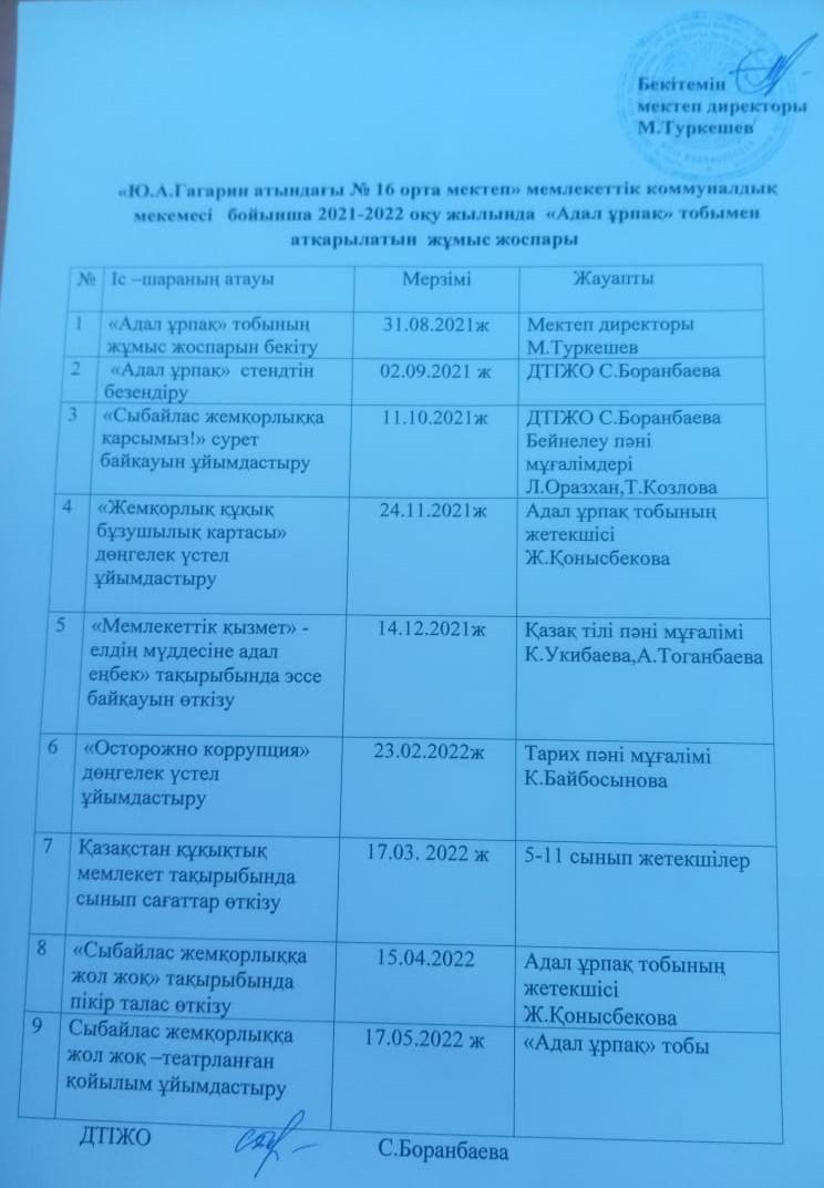 31 август 2021 0 1 2 3 4 5 Адал ұрпақ тобымен атқарылатын жұмыс жоспары 2021 - 2022 оқу жылында "Адал ұрпақ тобымен" атқарылатын жұмыс жоспары
