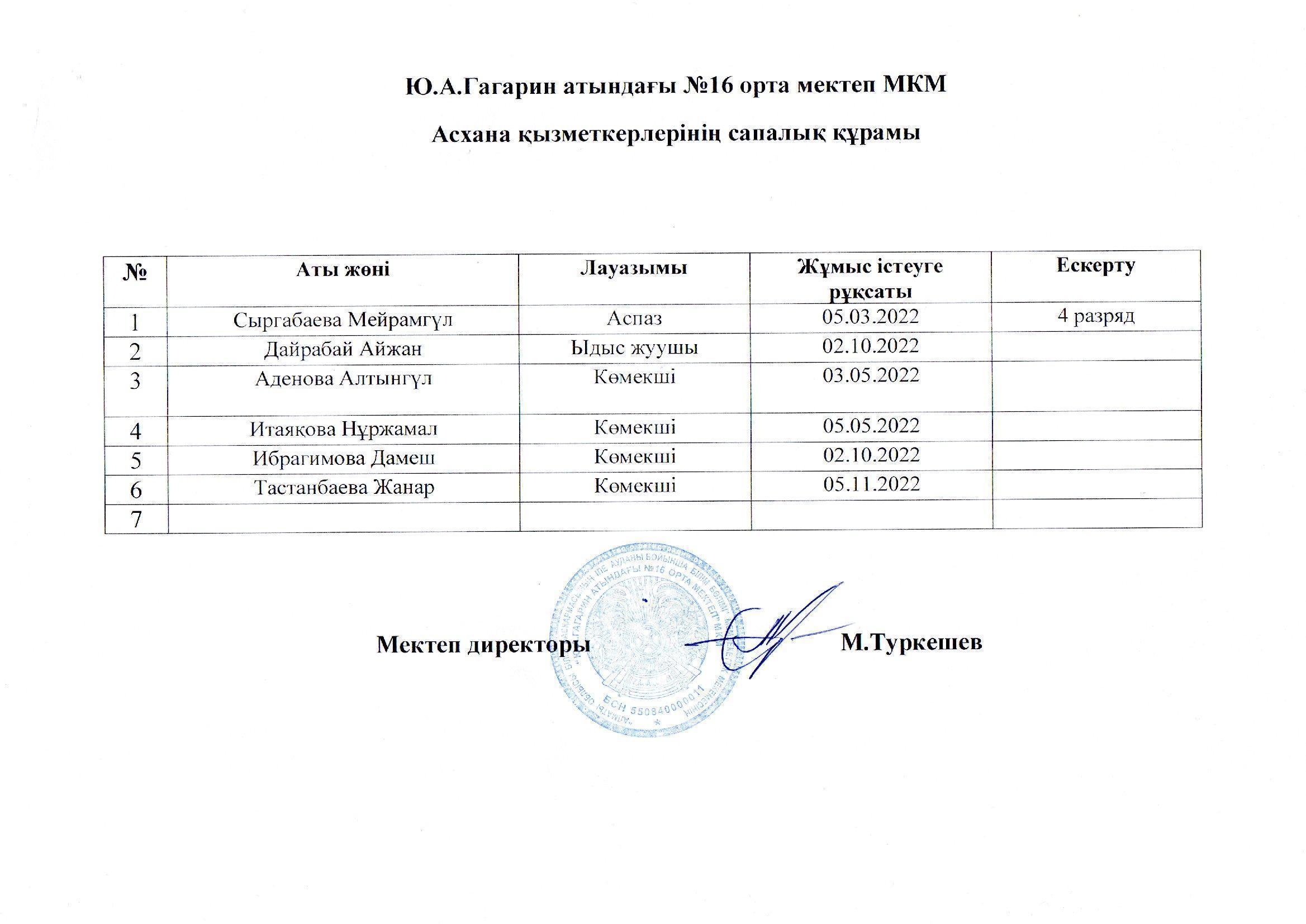 Тегін ыстық тамақтану бойынша құжаттар » №16 ОРТА МЕКТЕП