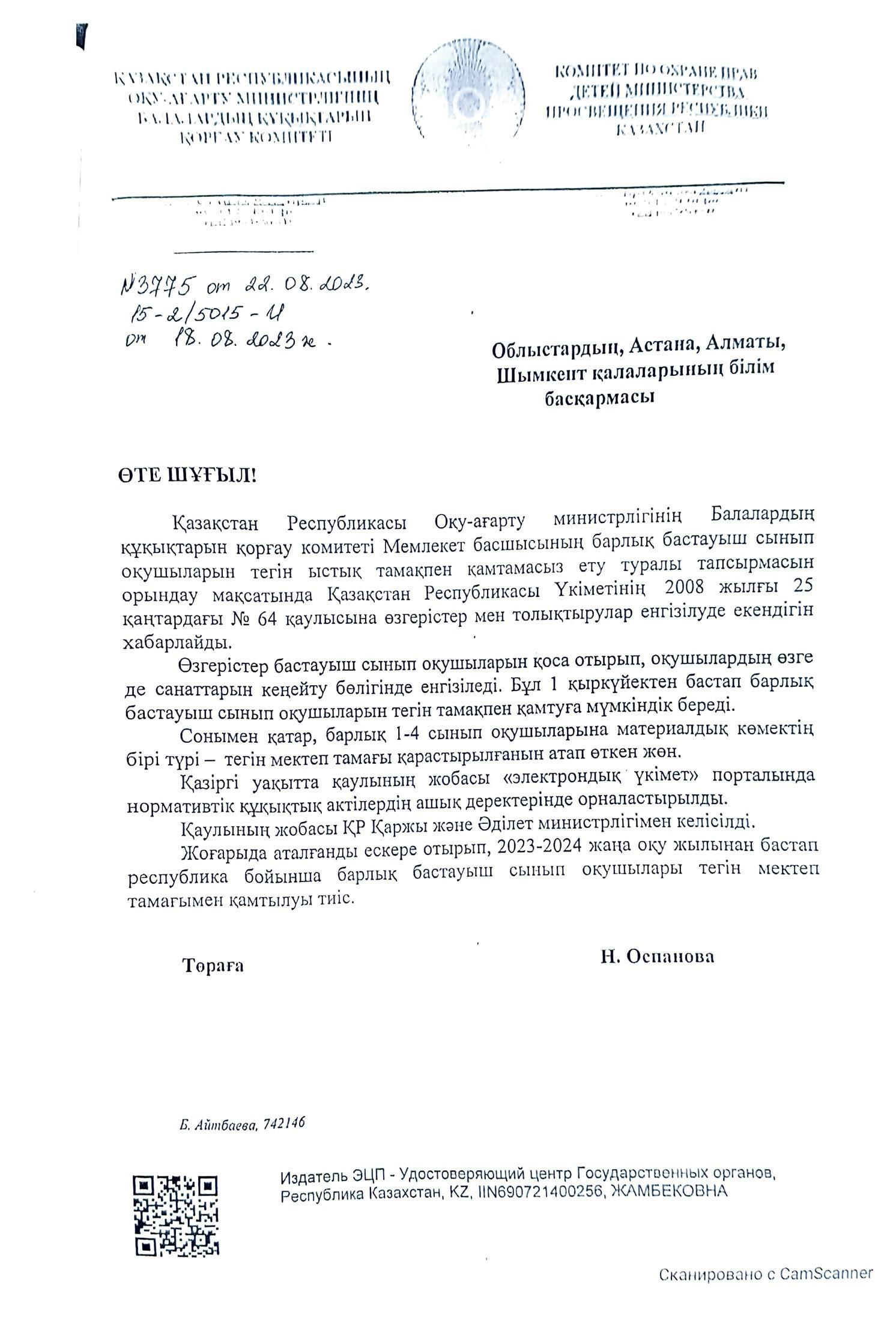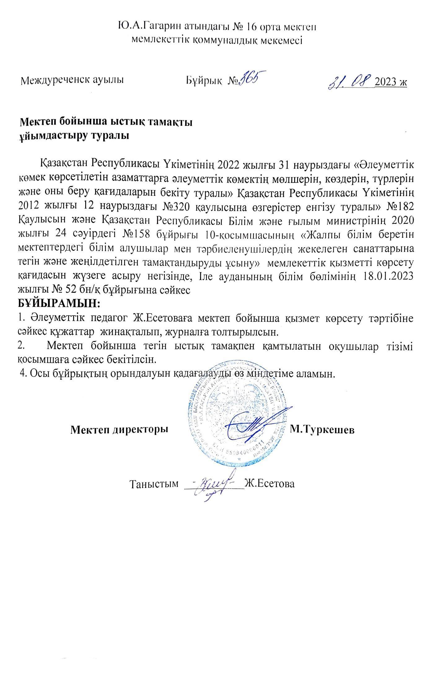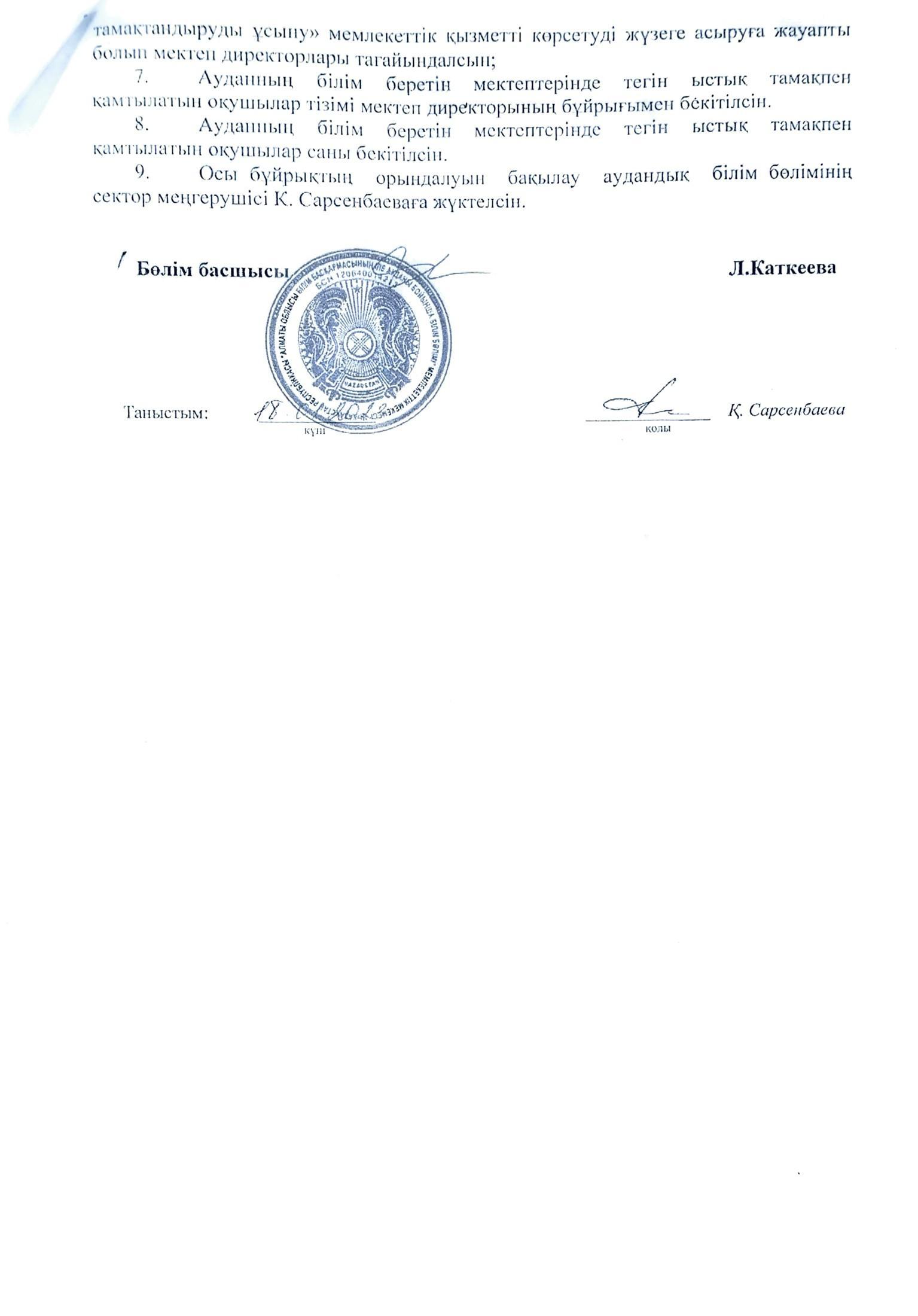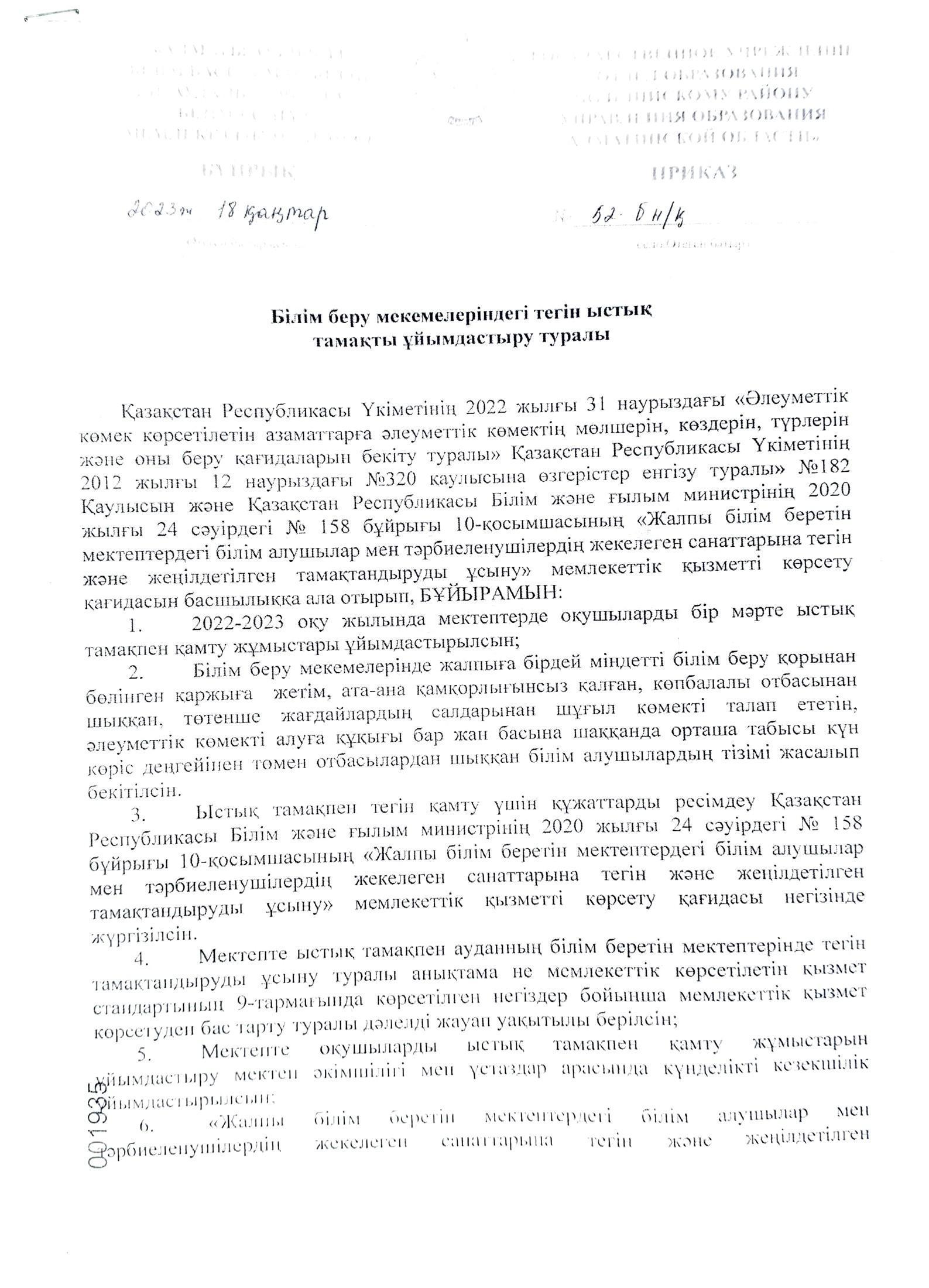 01 сентябрь 2023 0 1 2 3 4 5 Мектеп бойынша ыстық тамақты ұйымдастыру туралы бұйрықтар Мектеп бойынша ыстық тамақты ұйымдастыру туралы