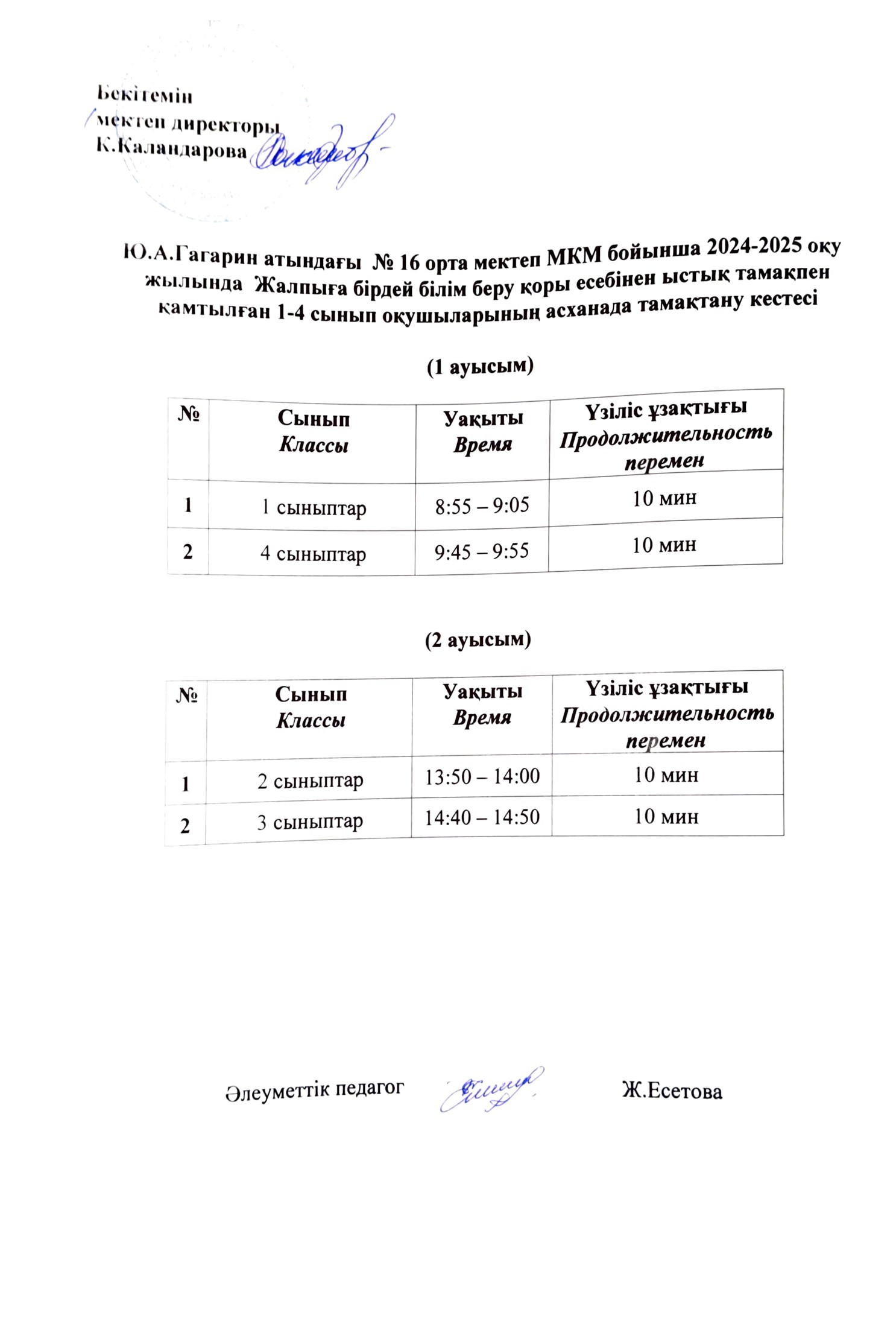 09 январь 2025 0 1 2 3 4 5 2024-2025 оқу жылында Жалпыға бірдей білім беру қоры есебінен ыстық тамақпен қамтылған оқушылардың асханада тамақтану кестесі