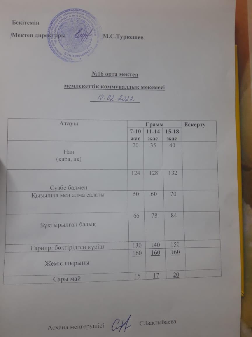 МЕНЮ 10.02.2022 » №16 ОРТА МЕКТЕП
