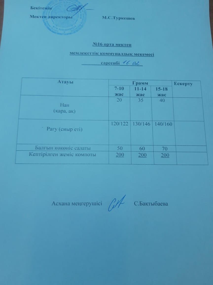 МЕНЮ 16.02.2022 » №16 ОРТА МЕКТЕП