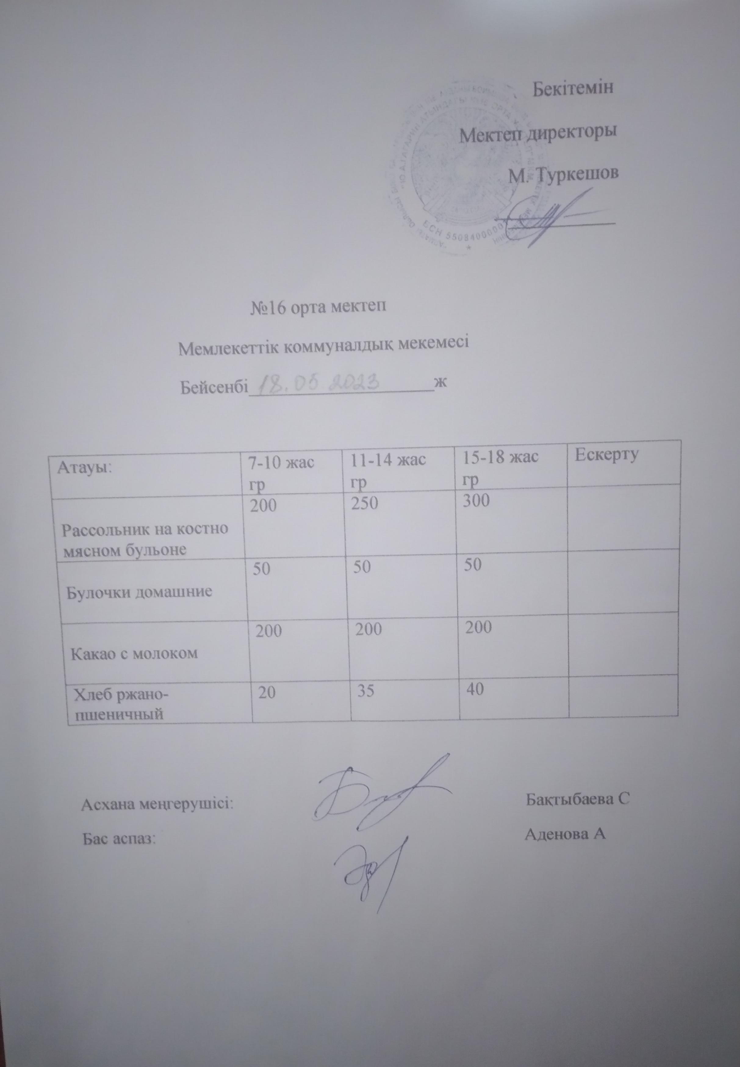 Меню 18.05.2023 » №16 ОРТА МЕКТЕП